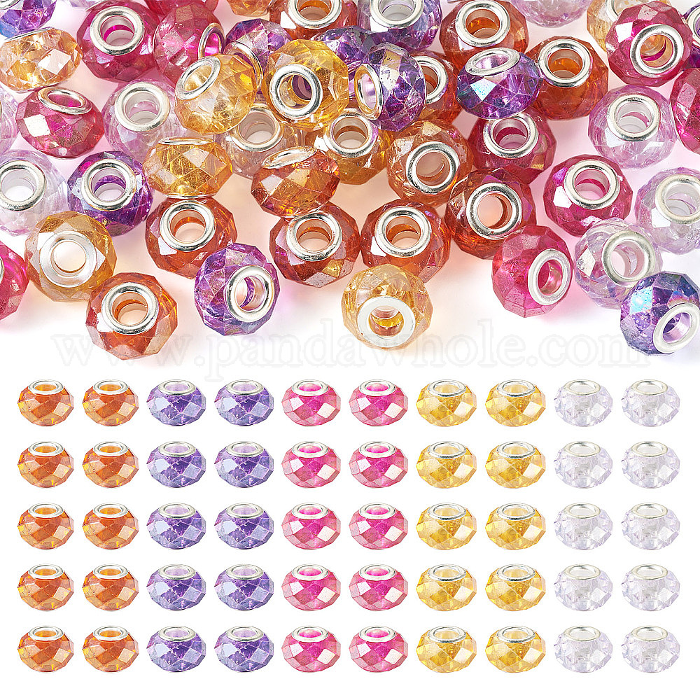 50 шт. 5 цвета, краска для выпечки, прозрачные стеклянные европейские бусины, бусины с большим отверстием, с медными сердечниками, с покрытием AB цвета, граненые, рондель