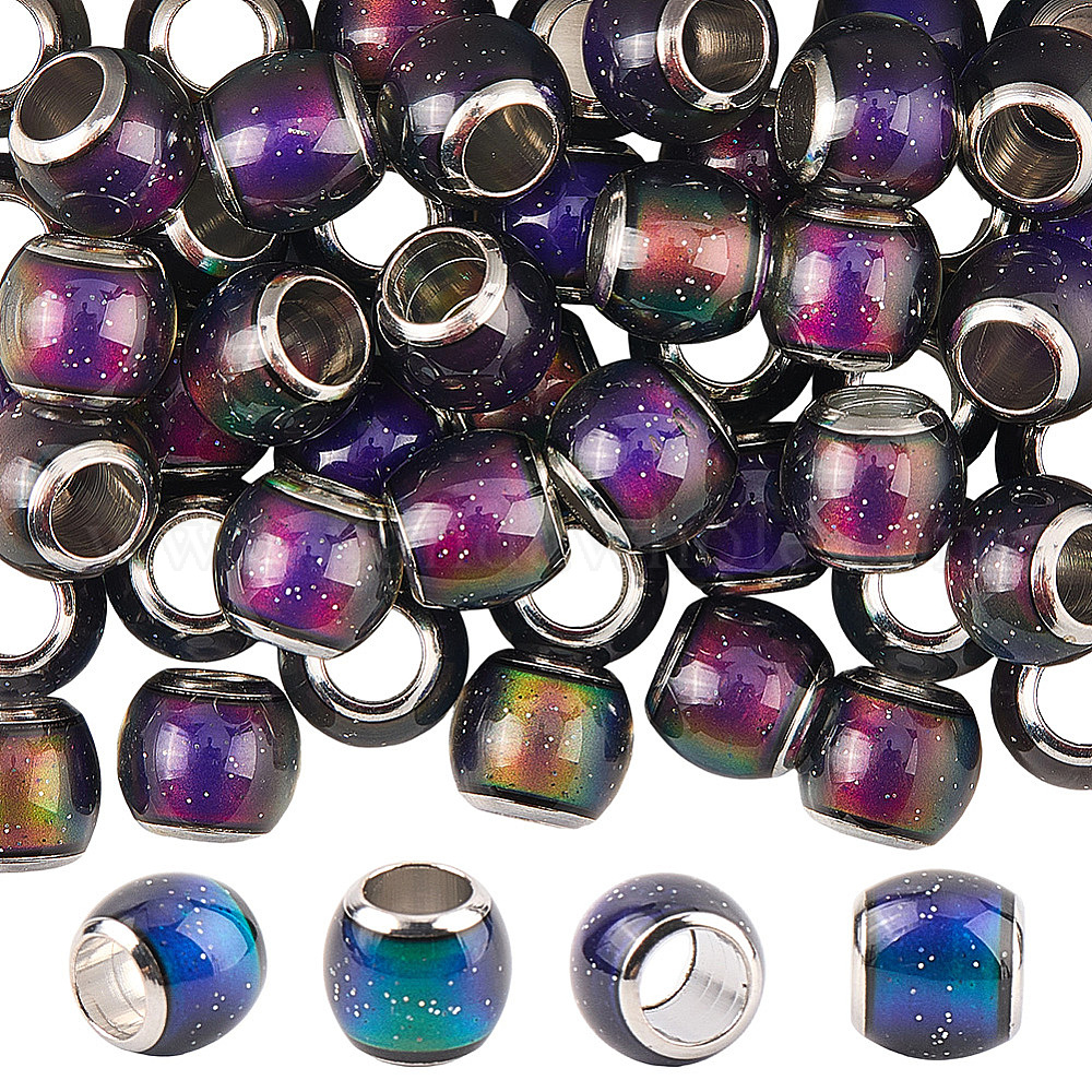 50 стеклянные европейские бусины, бусины с большим отверстием, с латунными двойными ядрами, платиновый оттенок, рондель, бусины настроения меняющие цвет