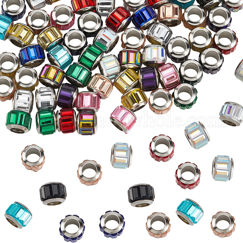 120 стеклянные европейские бусины, бусины с большим отверстием, с латунным стержнем, граненые, рондель, платина