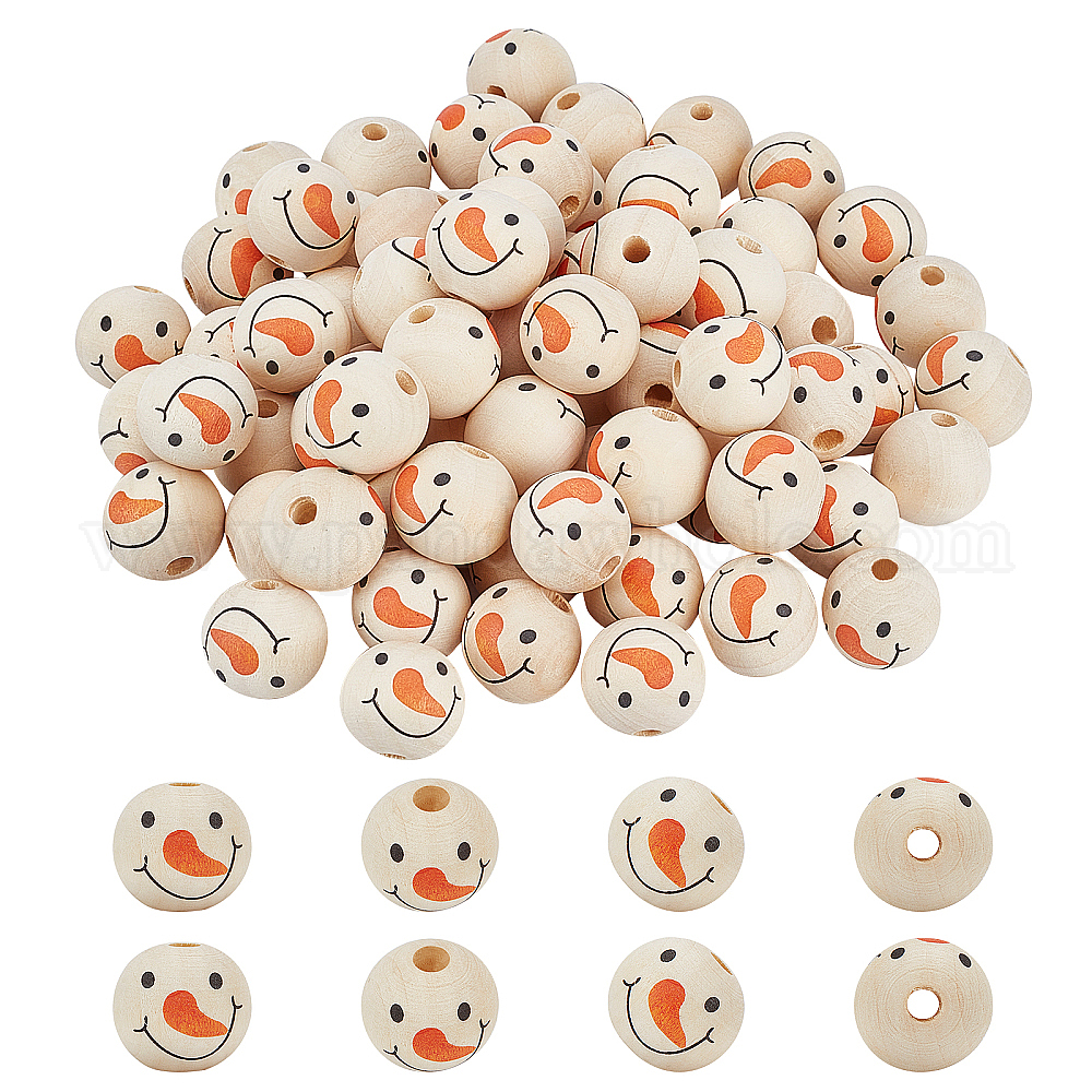 70шт необработанные европейские бусины из натурального дерева, бусины с большим отверстием, напечатанный, круглые