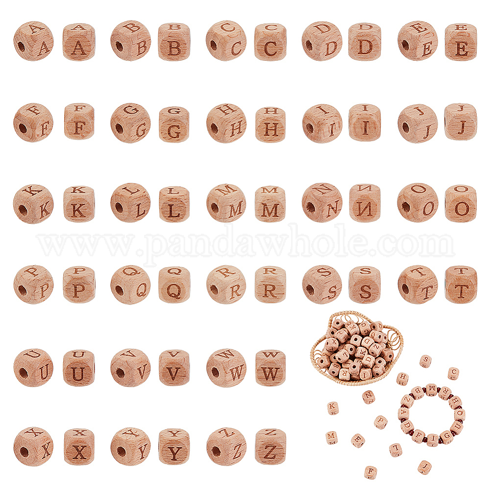 26шт алфавит деревянные европейские бусины, большое отверстие шарик, горизонтальное отверстие, куб с лазерной гравировкой буквы a~z