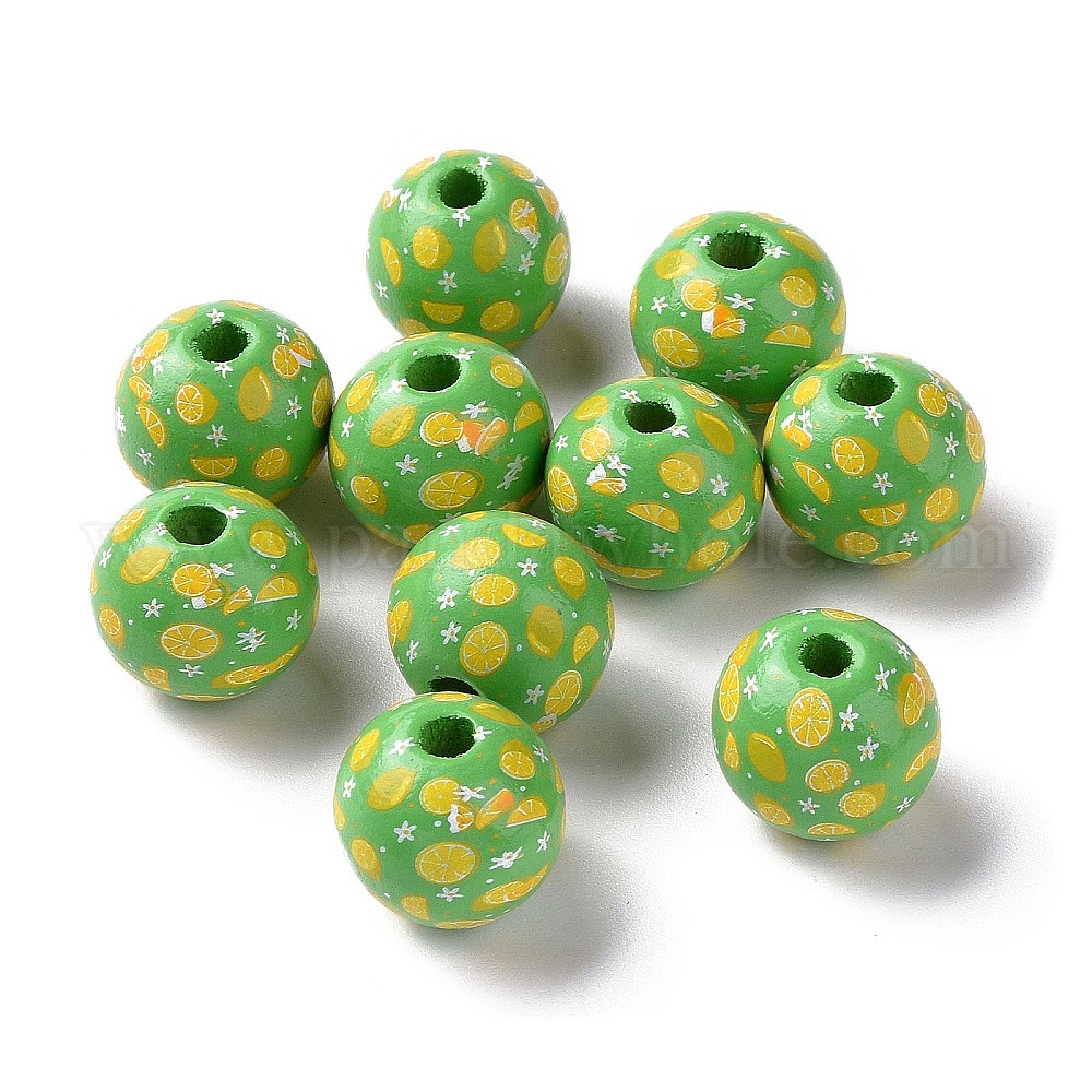 Европейские бусины из дерева шима, бусины с большим отверстием, круглый с рисунком пчел/лимон/апельсин