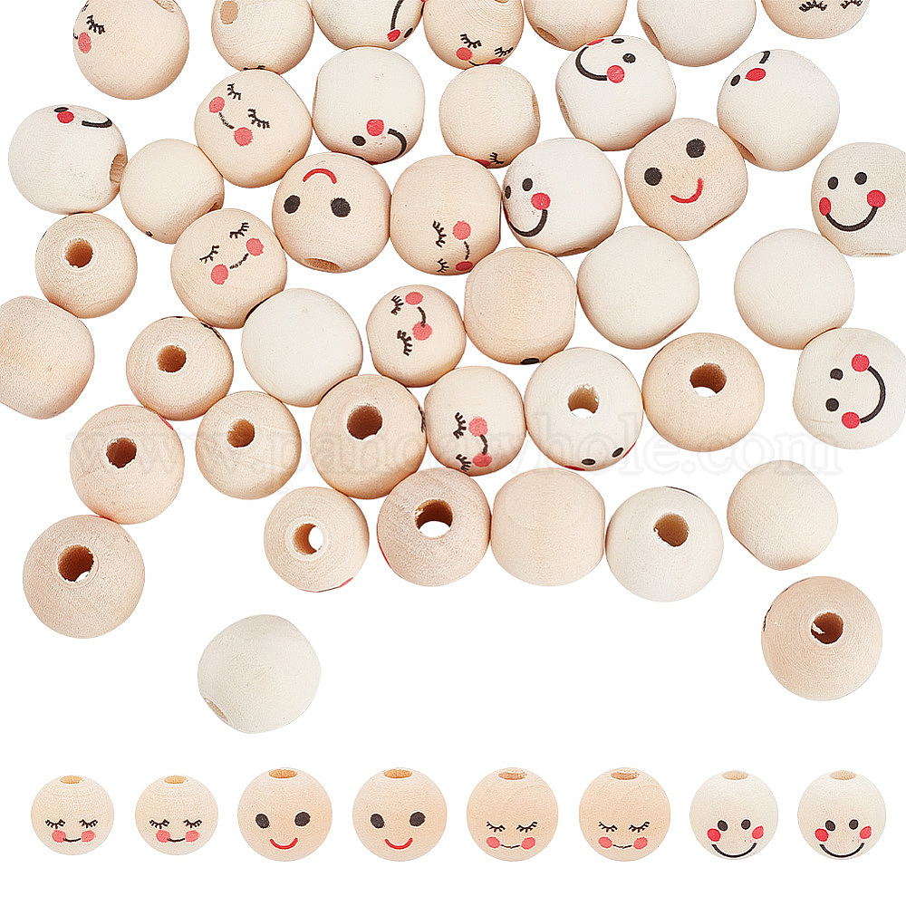 80 шт. 4 стили из натурального дерева, европейские бусины, бусины с большим отверстием, круглые бусины с улыбающимся лицом и принтом