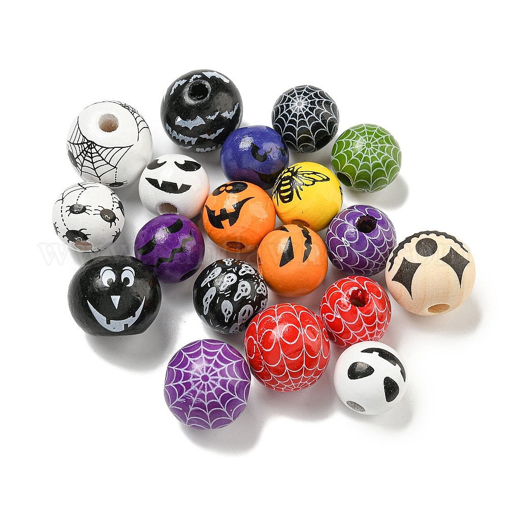 Набивные деревянные европейские бусины, бусины на тему Хэллоуина, круглые (02TDWZ)