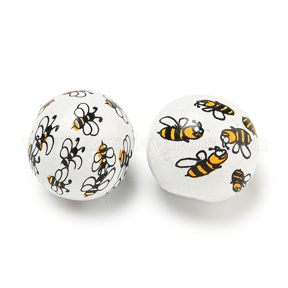 Набивные деревянные европейские бусины, круглый с рисунком пчел
