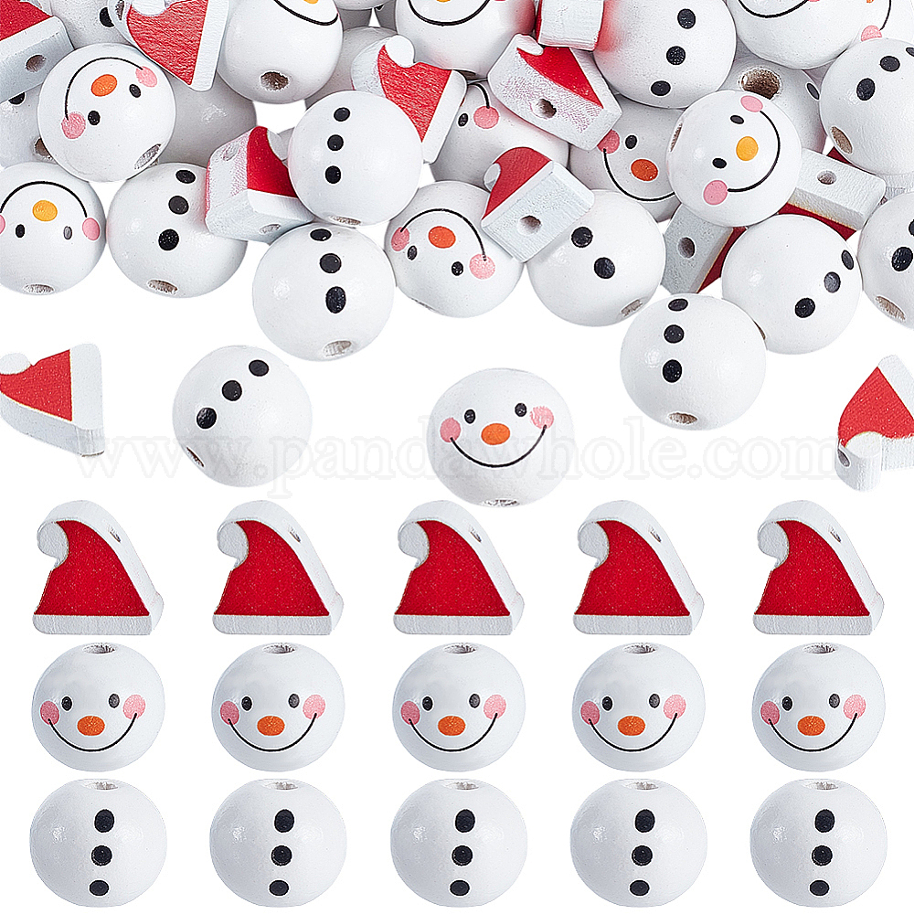 60 шт 3 стили рождественская тема напечатанные деревянные европейские бусины, бусины с большим отверстием, снеговик и шляпа