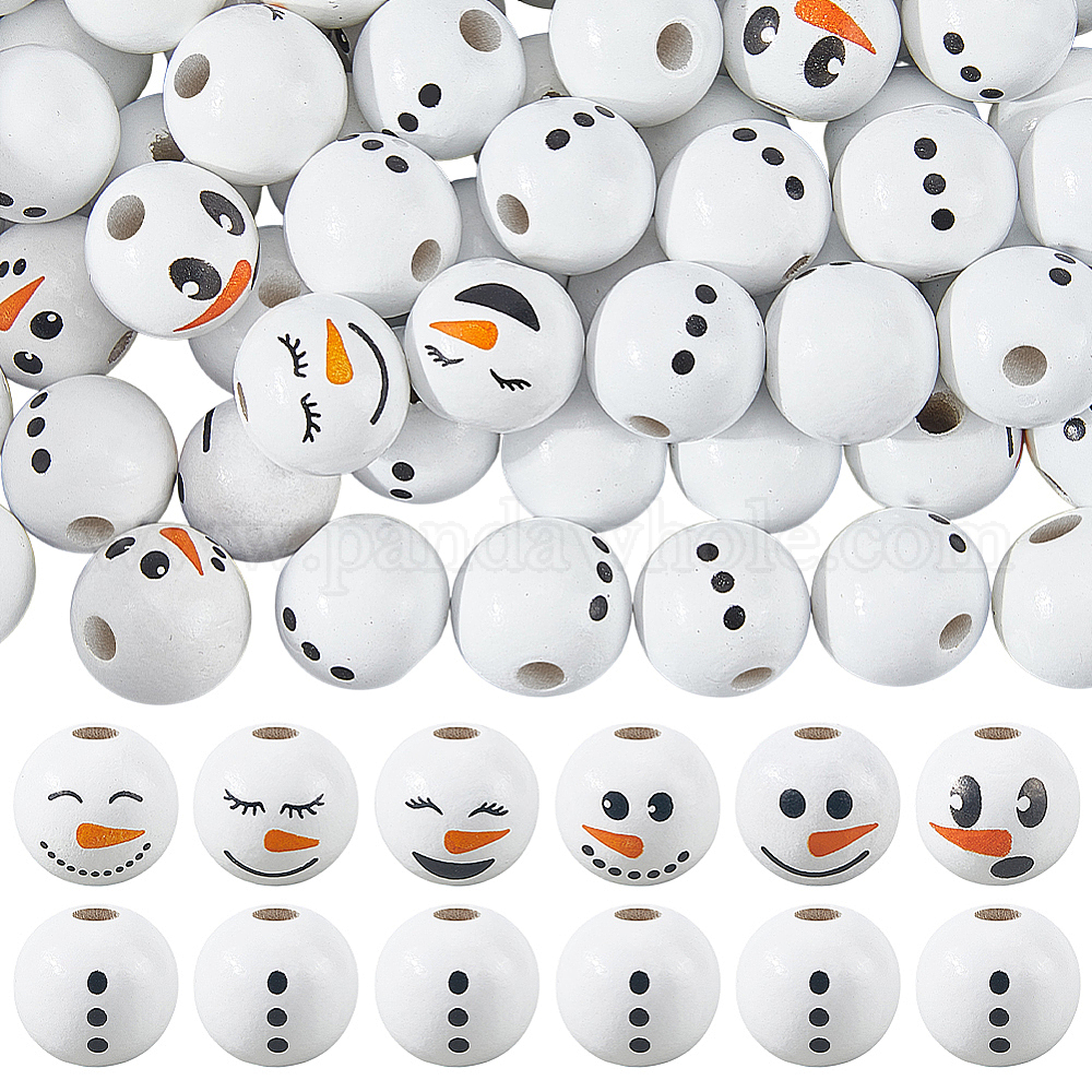 Тема рождественского снеговика напечатанные деревянные европейские бусины, крупные бусы круглое отверстие