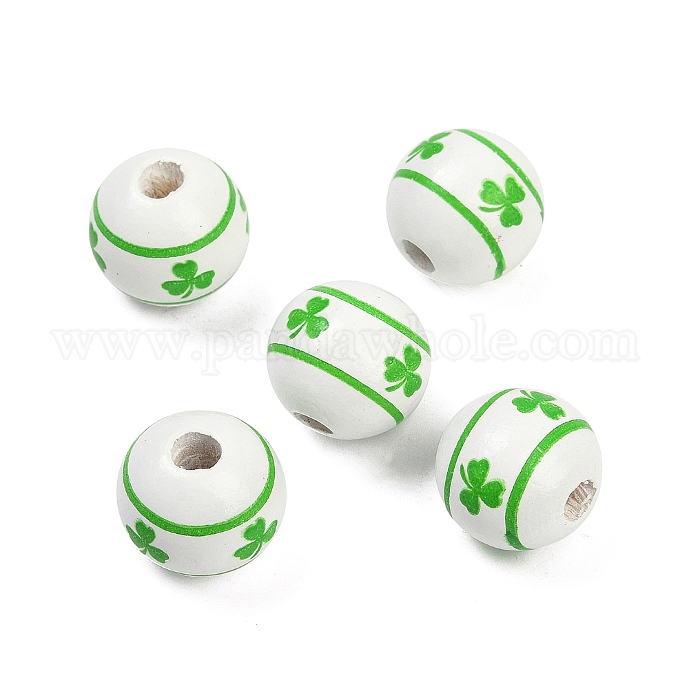 Спрей окрашены деревянные европейские бусины, бусины с большим отверстием, круглый с клеверным рисунком