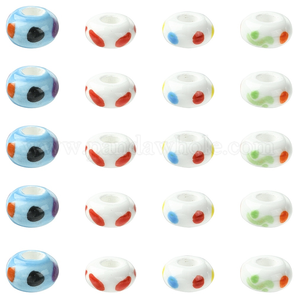 20шт. 4 цветов, фарфоровые бусины ручной работы с принтом, европейские бусины, бусины с большим отверстием, рондель (037AR2)
