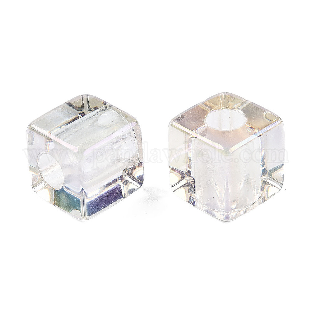 Прозрачный полимер европейские шарики, гальваническое покрытие, бусины с большим отверстием, кубические