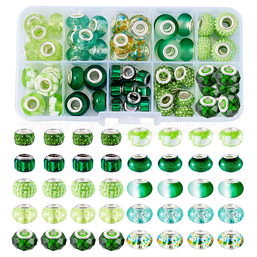 70 шт 10 стили смолы европейские бусины, бусины-рондели с крупными отверстиями и латунным стержнем