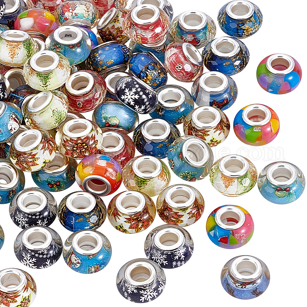 100 шт 10 цвета смолы европейские бусины, бусины с большим отверстием, рондель