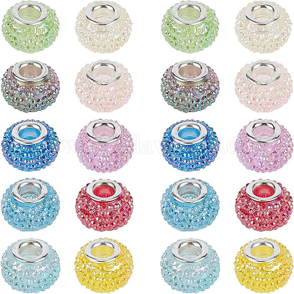 • (52) Непрозрачная лаванда Cmолы Rhinestone Европейский бисером, бусины с большим отверстием, с латунными двойными ядрами, платиновый оттенок, AB цвет, рондель, Берри бисера, разноцветные, 14x10 мм, отверстие : 5 мм, 30 шт / коробка