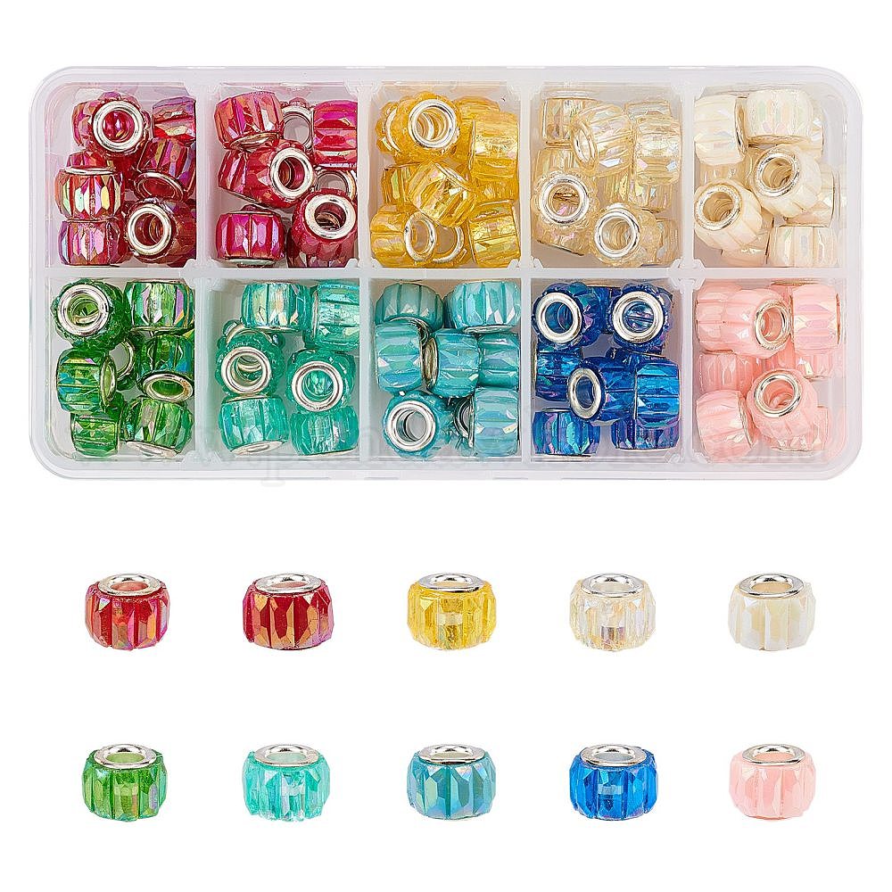 • (52) Непрозрачная лаванда Европейские бусины из непрозрачной / прозрачной смолы, бусины с большим отверстием, с серебряным покрытием цвета латуни двойные сердечники, граненые, с покрытием AB цвета, колонка, разноцветные, 11.5x8 мм, отверстие : 5 мм, 100 шт / коробка