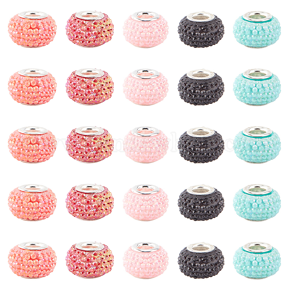 Непрозрачная смола европейский бисер, бусины с большим отверстием, бусберри бисер, с латунными двойными ядрами, платиновый оттенок, AB цвет, рондель
