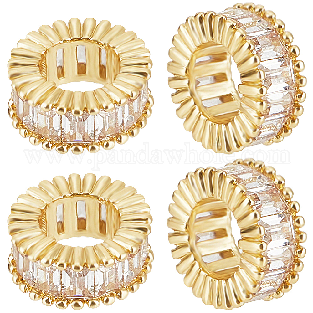 • Настоящее золото 18K 5шт. латунные микро-паве кубические циркониевые европейские бусины, бусины с большим отверстием, долговечный, кольцо, прозрачные, реальный 18 k позолоченный, 7x3 мм, отверстие : 4 мм