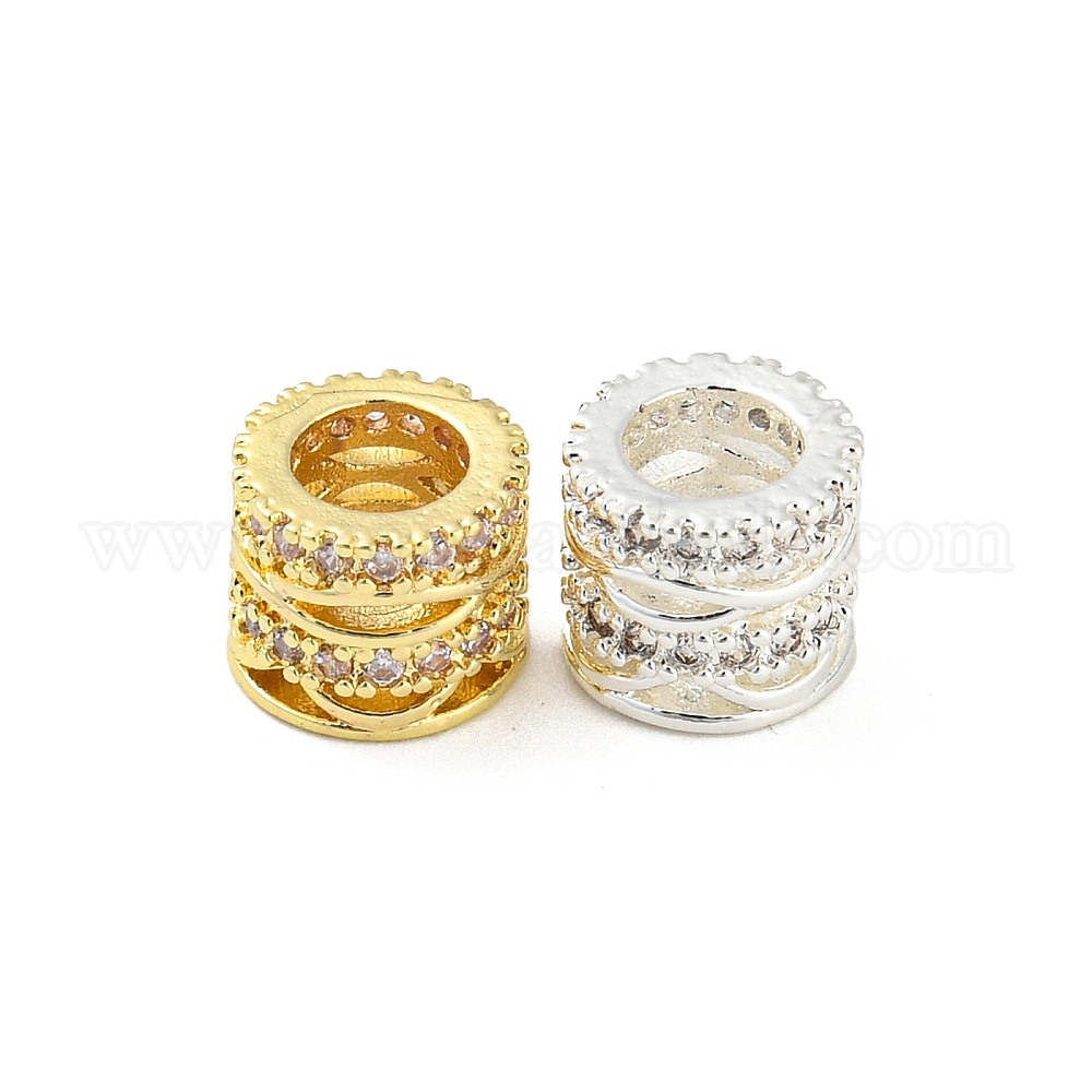 • Золотой Латунные микро проложить Цирконий Европейский бисером, бусины с большим отверстием, долговечный, без свинца и без кадмия, Полая колонна, золотые, 7.5x6 мм, отверстие : 4.3 мм
