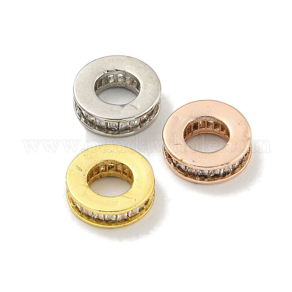 Реечное покрытие латунь микро паве прозрачный кубический цирконий европейские бусины, бусины с большим отверстием, долговечный, без свинца и без кадмия, плоско-круглые