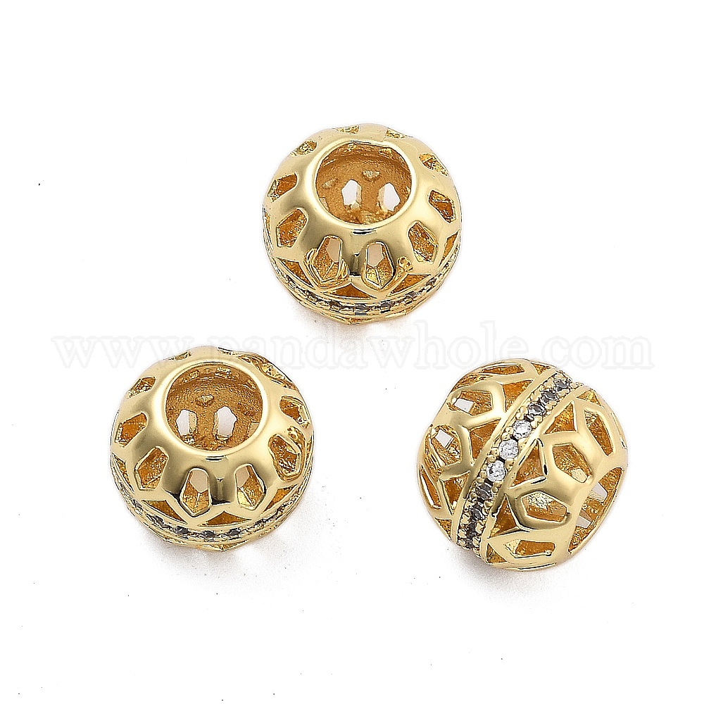 Латунные микро-паве кубические циркониевые бусины европы, бусины с большим отверстием, долговечный, без кадмия и без свинца, круглые