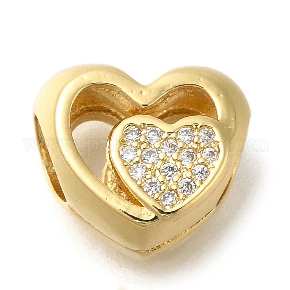 • Настоящее золото 18K Латунные микро проложить Цирконий Европейский бисером, сердце, бусины с большим отверстием, без свинца и без кадмия, долговечный, реальный 18 k позолоченный, 11x12.5x8 мм, отверстие : 4.5 мм