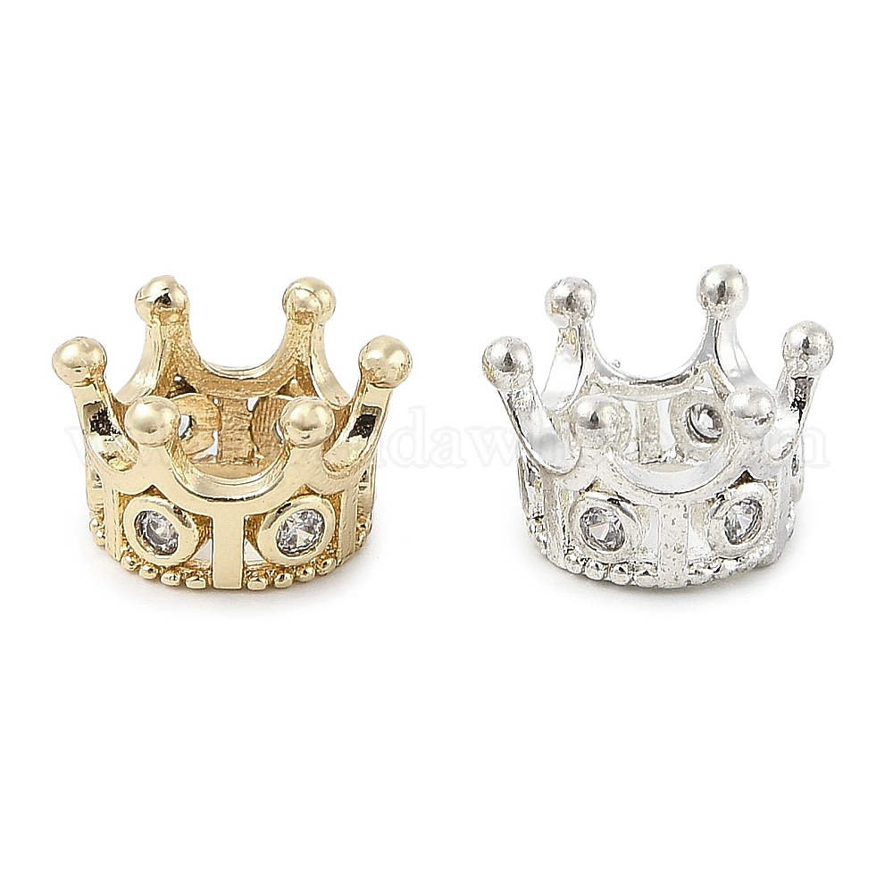 Латунные микро проложить Цирконий Европейский бисером, корона, бусины с большим отверстием, без свинца и без кадмия