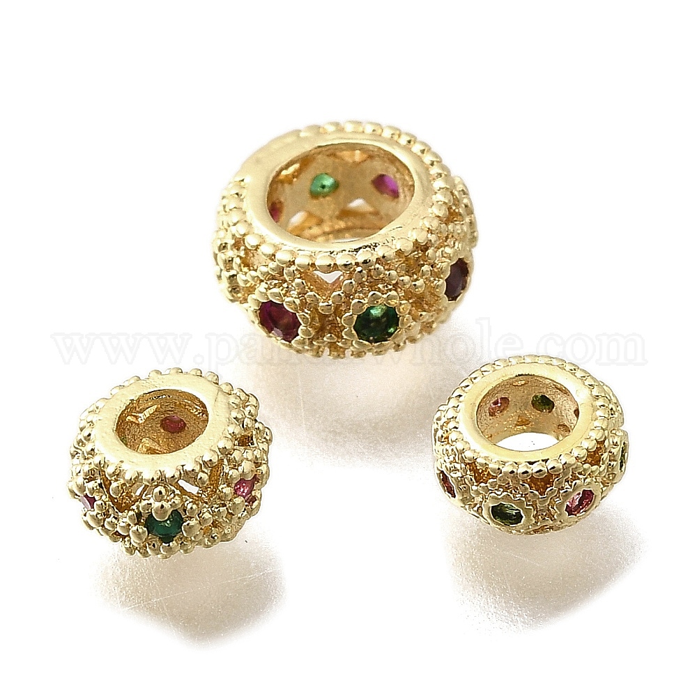 Латунные микропаве прозрачные кубические европейские циркониевые бусины, долговечный, плоско-круглые, бусины с большим отверстием