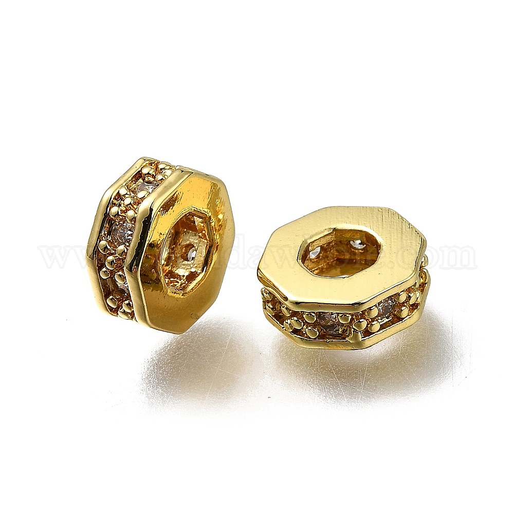Латунь микропаве прозрачный кубический цирконий европейский бисер, бусины с большим отверстием, многоугольник, долговечный, стойки покрытие, без свинца и без кадмия