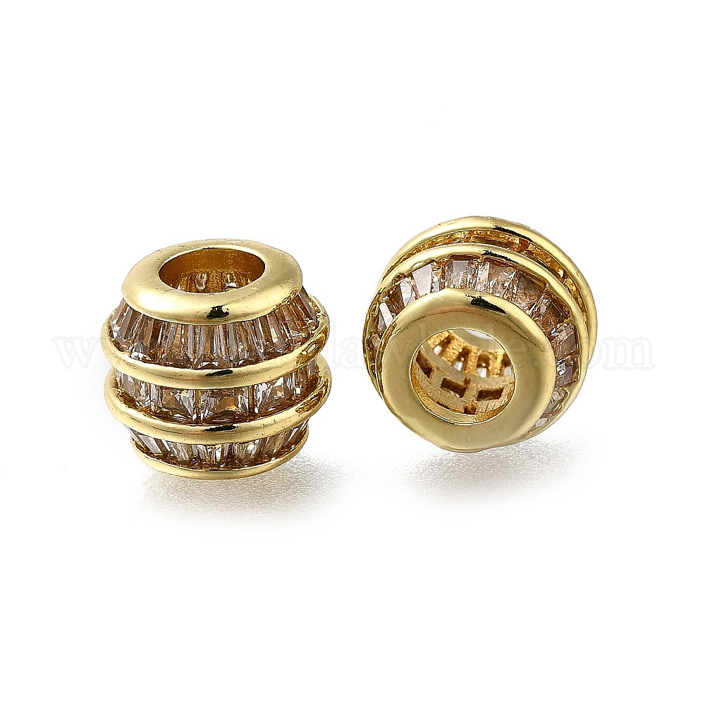 Латунь микропаве прозрачный кубический цирконий европейский бисер, долговечный, стойки покрытие, без свинца и без кадмия, колонка, бусины с большим отверстием