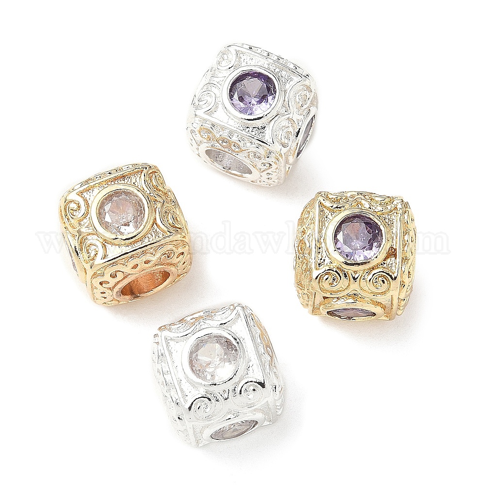 • Серебро Латунные кубические сиреневые циркониевые европейские бусины, долговечный, кубические, серебряные, 9.5x9.5x9.5 мм, отверстие : 4 мм