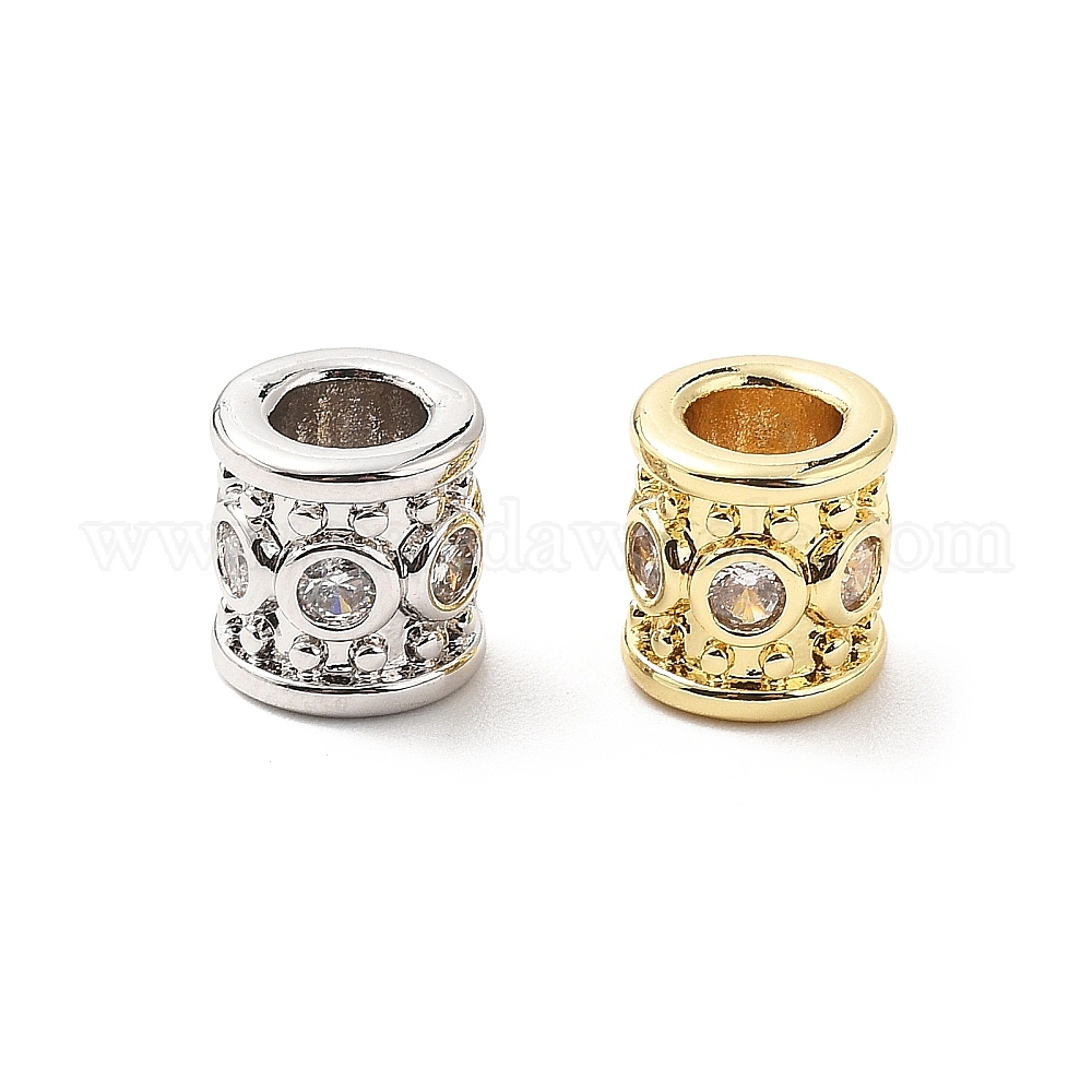 • Платина Колонна латунные микропаве прозрачные кубические цирконии европейские бусины, бусины с большим отверстием, стойки покрытие, без свинца и без кадмия, долговечный, платина, 8x7.5 мм, отверстие : 4 мм