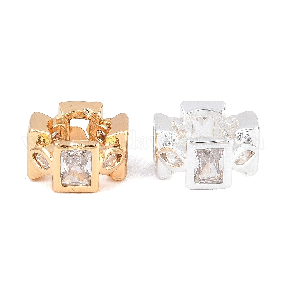 Латунь микропаве прозрачный кубический цирконий европейский бисер, бусины с большим отверстием, плоские круглые с прямоугольника