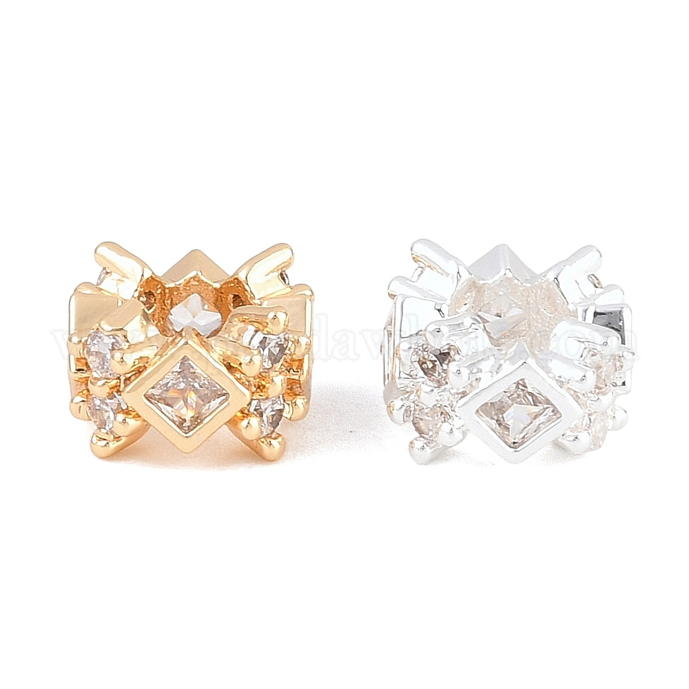 Латунь микропаве прозрачный кубический цирконий европейский бисер, бусины с большим отверстием, плоские круглые с ромбами