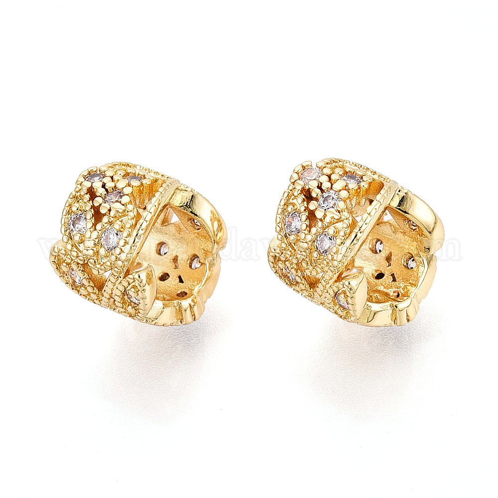 • Настоящее золото 18K Латунь микропаве прозрачный кубический цирконий европейский бисер, бусины с большим отверстием, лист, реальный 18 k позолоченный, 9.5x7.5 мм, отверстие : 6 мм