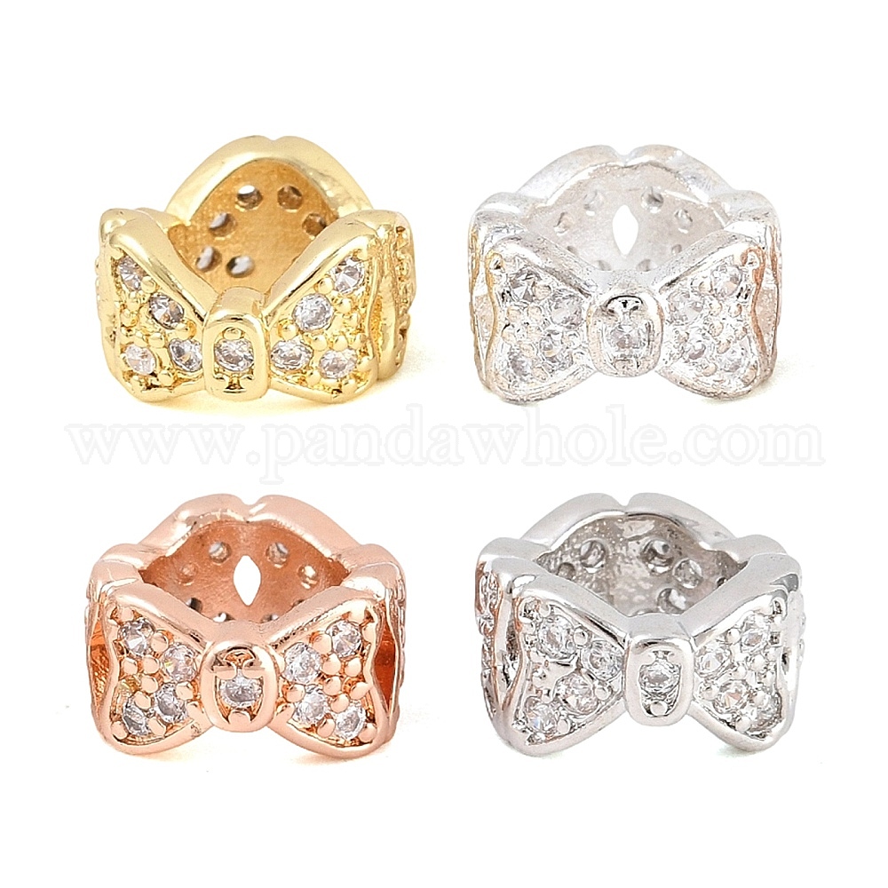 Бусины из латуни с прозрачным кубическим цирконием в форме бантика, бусины с большим отверстием, без кадмия и без свинца, стойки покрытие, долговечный