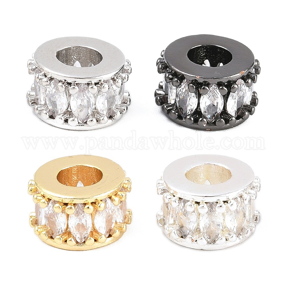 Латунь микропаве прозрачный кубический цирконий европейский бисер, колесо рондель, бусина с большим отверстием, долговечный, стойки покрытие, без свинца и без кадмия