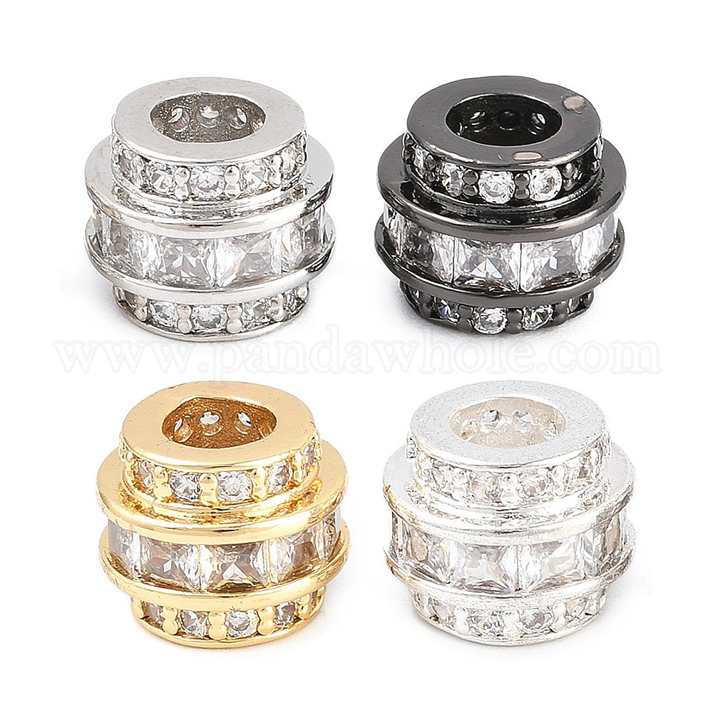 Латунь микропаве прозрачный кубический цирконий европейский бисер, колонка с большим отверстием бусина, долговечный, стойки покрытие, без свинца и без кадмия