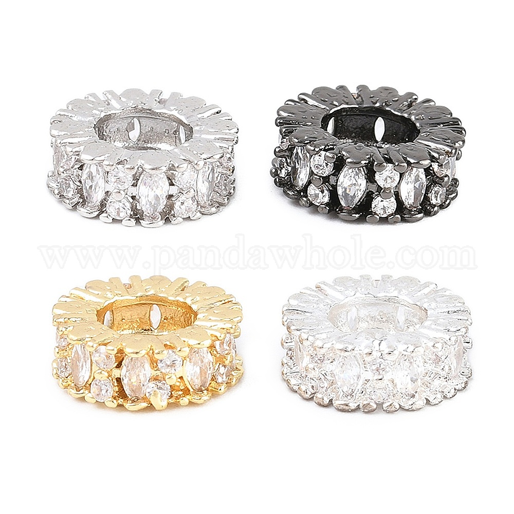 Латунь микропаве прозрачный кубический цирконий европейский бисер, колесо рондель, бусина с большим отверстием, долговечный, стойки покрытие, без свинца и без кадмия