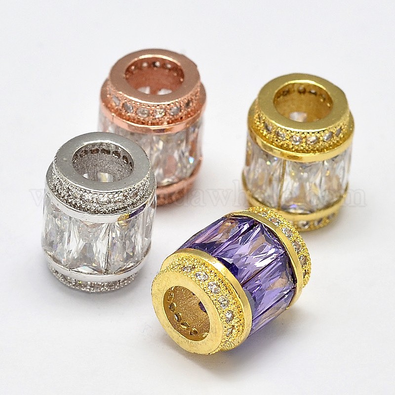 Стойка металлизированная и долговечная латунь микро проложить кубический цирконий европейский бисер, со стеклом, колонка, бусины с большим отверстием, без никеля , 11x9 мм, отверстие : 4.5 мм