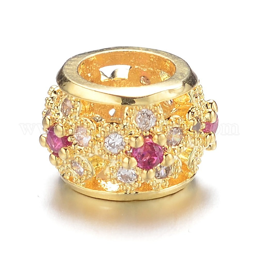 Латунные микро проложить Цирконий Европейский бисером, рондель, бусины с большим отверстием, без свинца и без никеля , 9x6 мм, отверстие : 4.5 мм