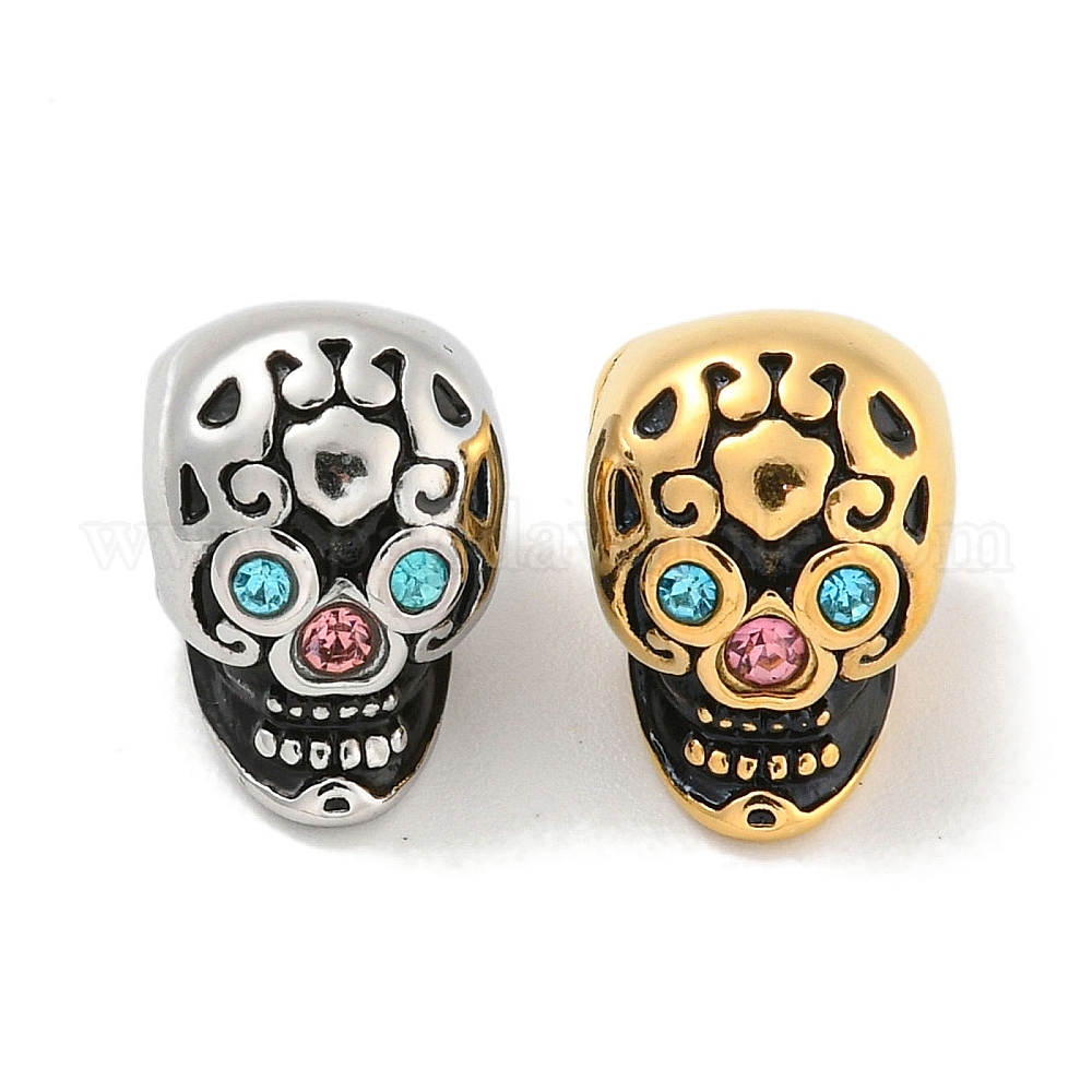 • Золотой 304 горный хрусталь из нержавеющей стали европейские шарики, с эмалью, бусины с большим отверстием, череп, золотые, 13x9x10.5 мм, отверстие : 4.5 мм