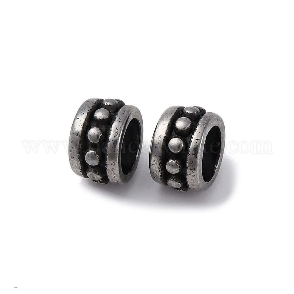 • Античное Серебро 304 из нержавеющей стали европейские шарики, бусины с большим отверстием, колонка, античное серебро, 7x4.5 мм, отверстие : 4.5 мм