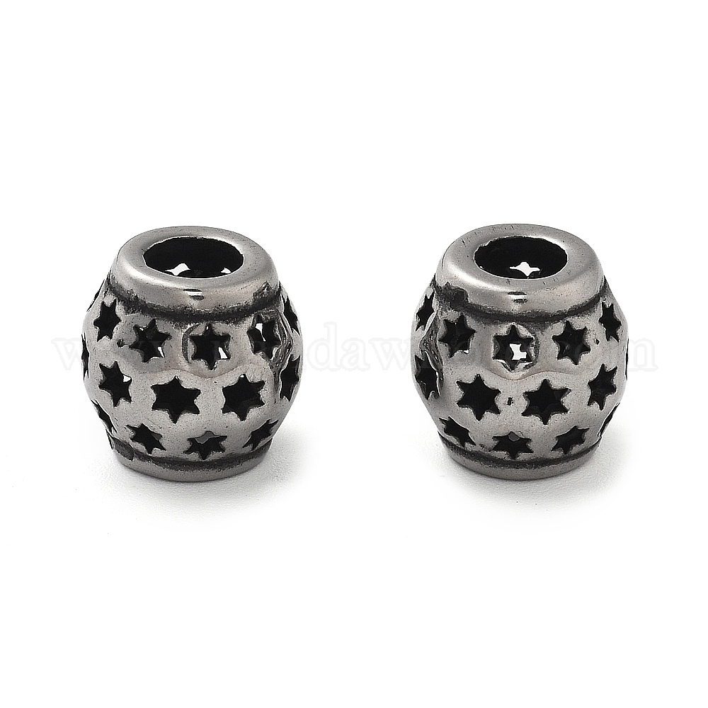 • Античное Серебро 304 из нержавеющей стали европейские шарики, бусины с большим отверстием, ионное покрытие (ip), рондель с полой звездой, античное серебро, 9.5x9.5 мм, отверстие : 4 мм