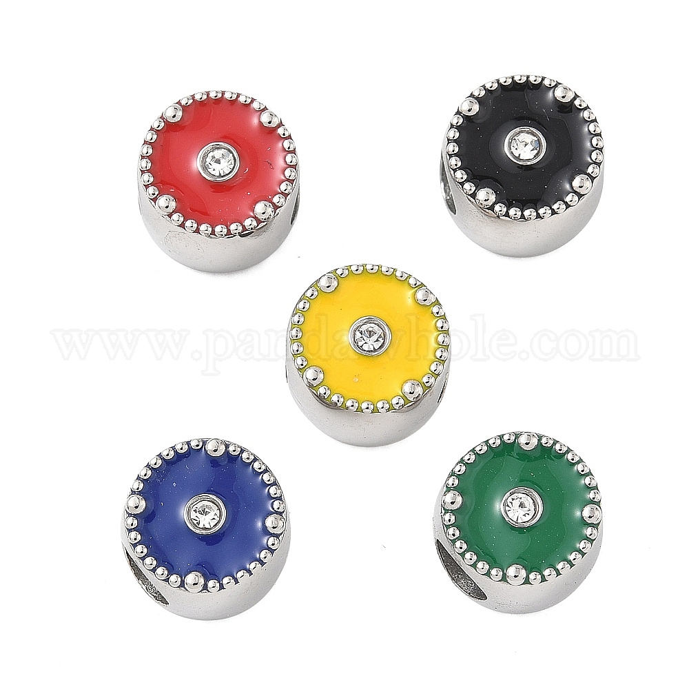 304 нержавеющая сталь, эмаль, европейские бусины со стразами, бусины с большим отверстием, плоско-круглые