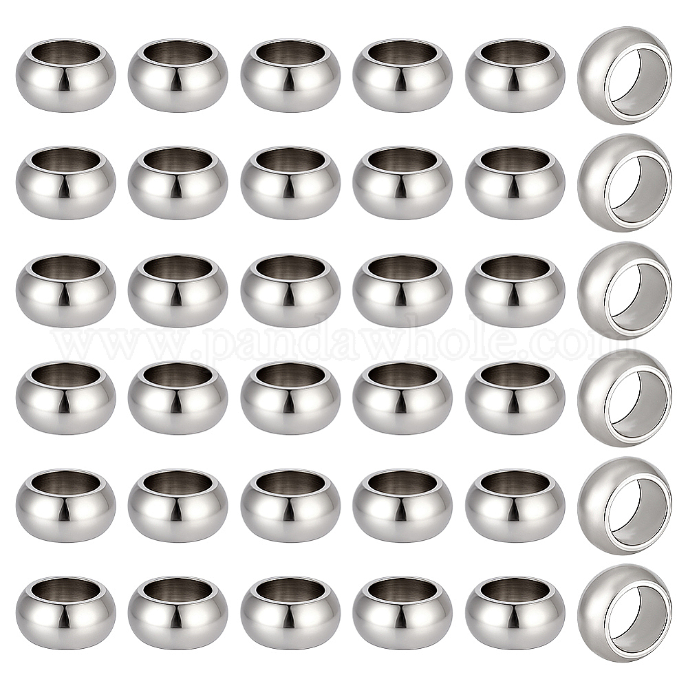 • Нержавеющая Сталь Цвет 40шт 201 европейские бусины из нержавеющей стали, бусины с большим отверстием, рондель, цвет нержавеющей стали, 12x6 мм, отверстие : 8 мм