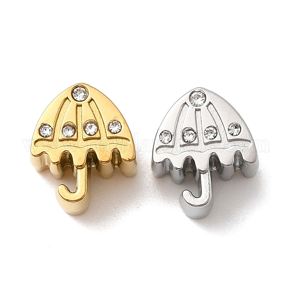 304 горный хрусталь из нержавеющей стали европейские шарики, бусины с большим отверстием, зонтик, ионное покрытие (ip)