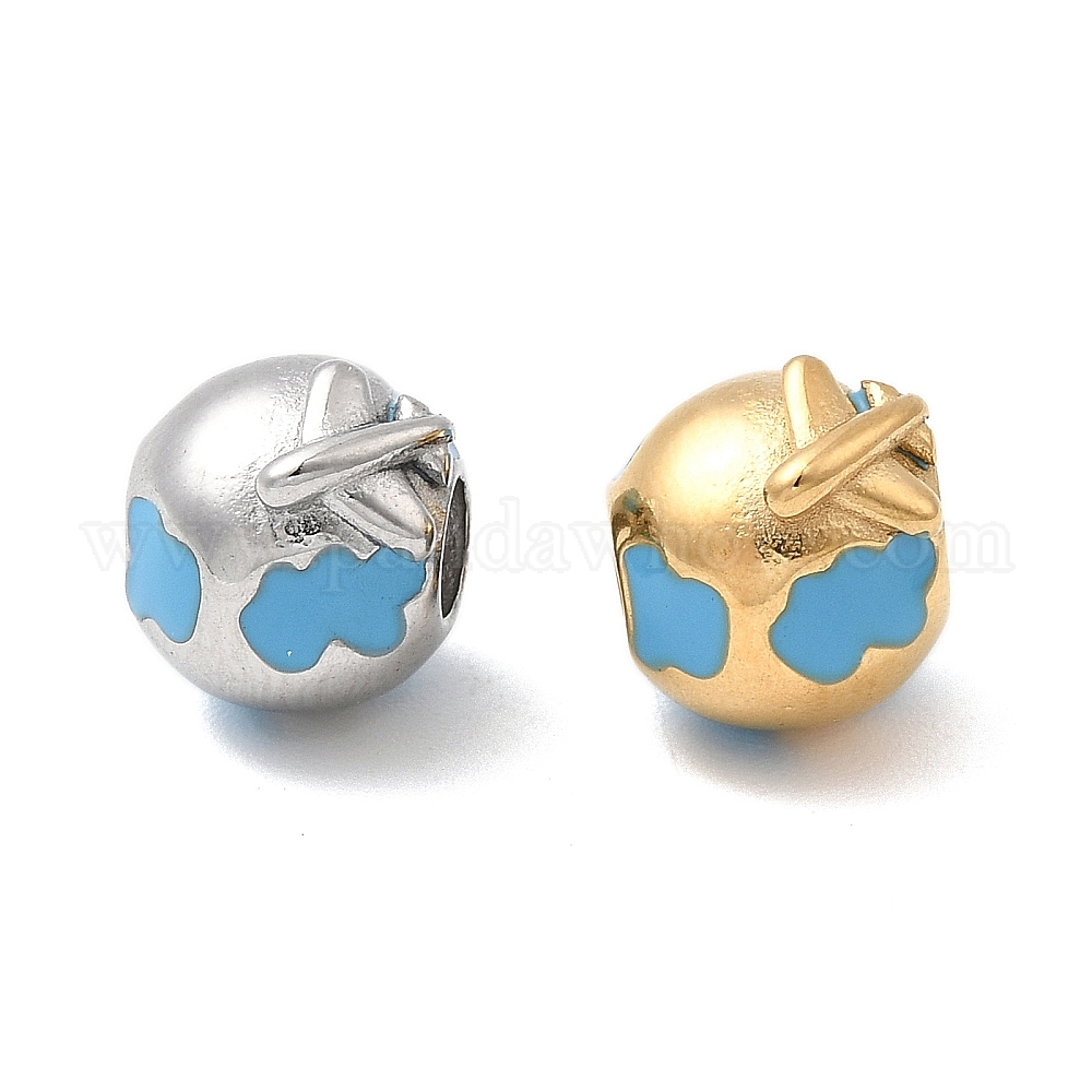 304 эмаль нержавеющей стали европейские шарики, бусины с большим отверстием, раунд с самолетом, ионное покрытие (ip)