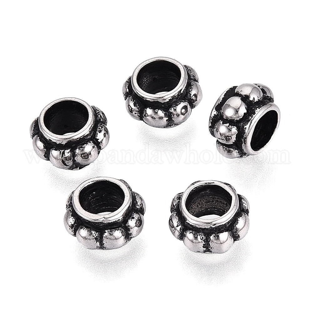 304 бусины европейского стиля из нержавеющей стали с крупными отверстиями, рондель
