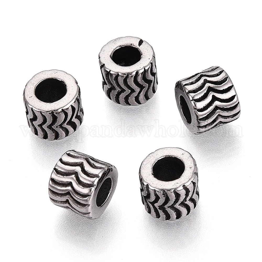• Античное Серебро 304 текстурированные бусины европейского стиля из нержавеющей стали с крупными отверстиями, колонка, античное серебро, 7.5x9 мм, отверстие : 4~4.5 мм