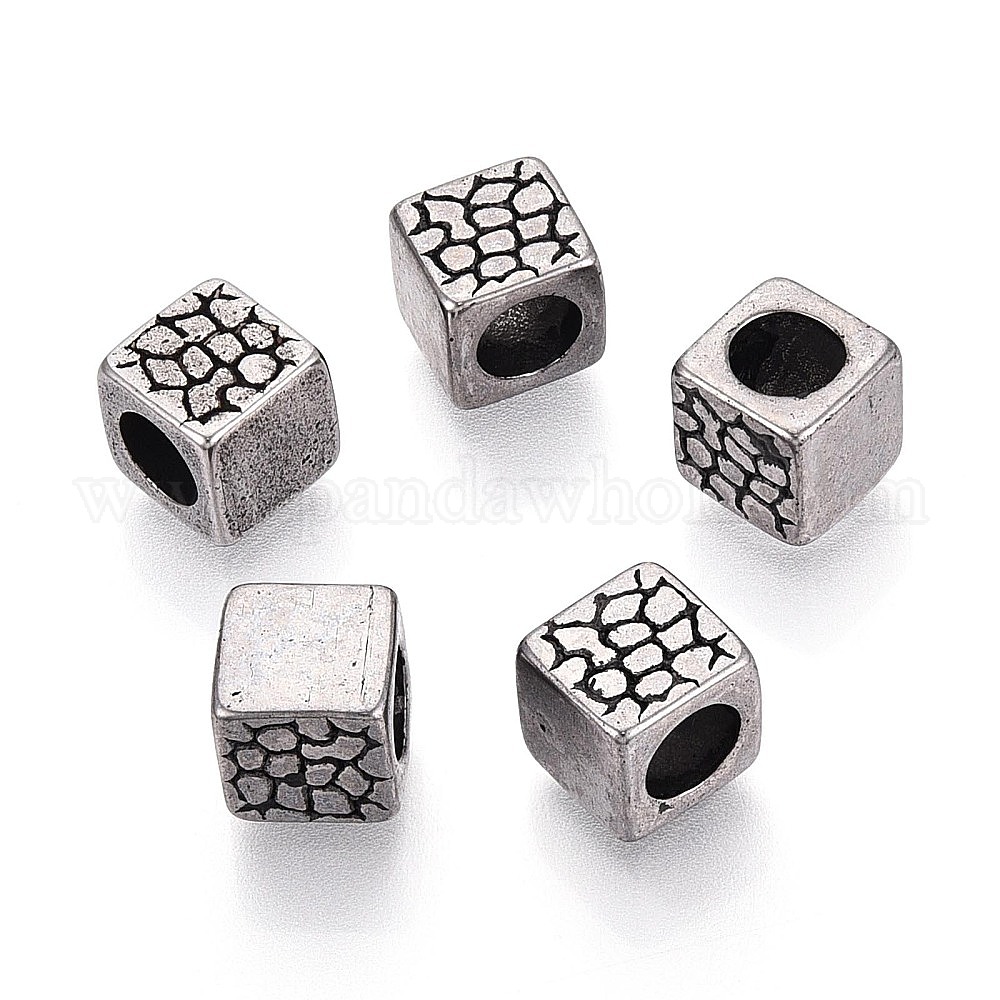 • Античное Серебро 304 текстурированные бусины европейского стиля из нержавеющей стали с крупными отверстиями, кубические, античное серебро, 8x8x8 мм, отверстие : 5 мм