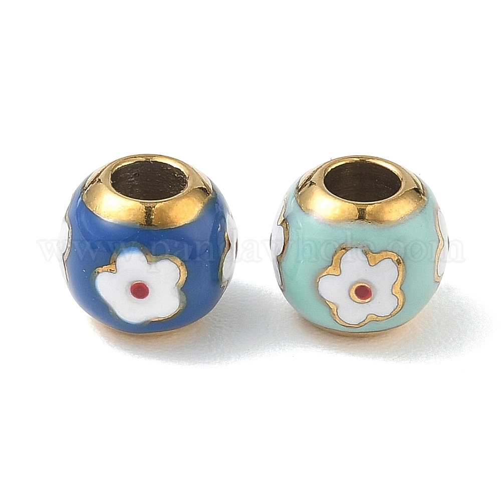 304 эмаль нержавеющей стали европейские шарики, ионное покрытие (ip), золотые, круглые с цветочным узором